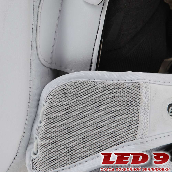 профессиональная модель является самой легкой из когда-либо выпущенных компанией. Блин имеет очень тонкий профиль блокирующей поверхности, что позволяет существенно снизить его вес. При изготовлении блокирующей поверхности используется композитный материал Curv, который обеспечивает профессиональный уровень защиты. Блокирующая поверхность имеет слегка изогнутый профиль и скошенную нижнюю кромку, что способствует повышенной мобильности руки в запястье, обеспечивает лучший контроль отскока шайбы и позволяет лучше управлять клюшкой. Элементы защиты пальцев усилены пеной Poron XRD, которая создает эффективную защиту этой области руки, предотвращая травмы, и снижает вибрацию от удара. Боковая сторона руки и указательный палец полностью закрываются щитком, обеспечивая максимальный охват и защиту. Защита указательного пальца является съемной. Закрывающий большой палец щиток имеет дополнительное усиление. При производстве ладони используется высокопрочный, синтетический материал AX Suede Quattro, который обеспечивает отличную защиту и амортизацию. При изготовлении ладони перчатки применяется технология 37.5, которая позволяет использовать тепло тела для быстрого испарения влаги. Легкая, воздухопроницаемая манжета имеет конструкцию Free Flex, которая гарантирует максимальную мобильность руки в запястье. Ремешок на запястье надежно фиксирует блин на руке вратаря
