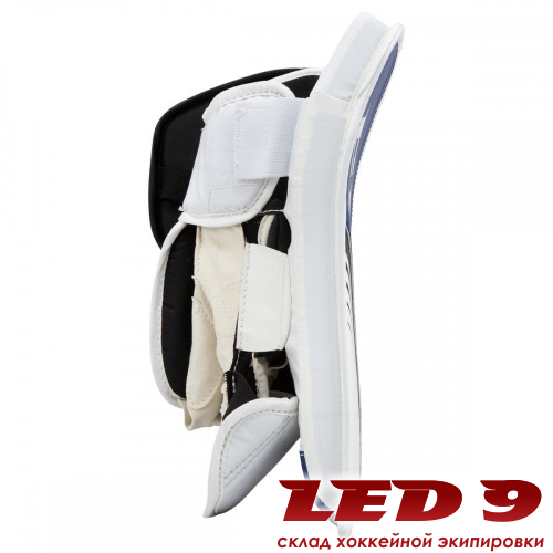 Изогнутая блокирующая поверхность помогает контролировать отскоки шайбы. Перчатка расположена в центе блокирующей поверхности для создания оптимального баланса. Большой палец изготовлен из цельного формованного пластика, что обеспечивает отличную защиту, а кончики пальцев защищены пеной низкой плотности и пластиковыми вставками на случай, если шайба подскочит при отражении бросков от клюшки. Пена средней плотности и пластиковые вставки используются для защиты руки в других, защитных элементах.
