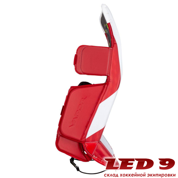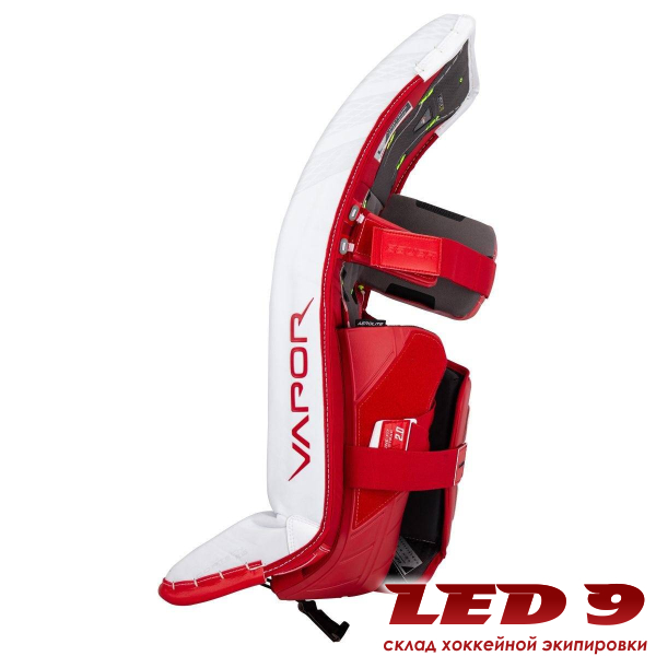 Щитки вратарские BAUER VAPOR HYPERLITE SR топовая модель, новинка сезона 2021 года. Внешняя отделка щитков выполнена из нового материала CORTech Plus, что придает щиткам отличную прочность и долговечность, способствует более жесткому и быстрому отскоку. Щитки имеют два излома, располагающиеся выше и ниже колена, что придает щиткам отличную гибкость. Плотная и жесткая внешняя поверхность щитков дает возможность выполнять длинные и быстрые скольжения. Щитки имеют новый сердечник Rebound Boost Core в сочетании с композитом Curv. Вставка из композитного материала Curv внутри щитка в районе бедра обеспечивает лучшее прилегание, эффективную и легкую защиту. Боковой профиль щитка имеет тонкий дизайн, который был реализован для уменьшения общего веса щитка. Поверхность скольжения с внутренней стороны имеет тонкий профиль, который содержит стратегические вырезы для снижения веса и создания поверхности с низким коэффициентом трения для самых быстрых скольжений. Щитки имеют сверхжесткий коленный блок StabiliFlex, которые позволяет вратарю быстро переходить в позицию «бабочка» без потери энергии. Канал для колена выстлан синтетическим материалом, который обладает высокой износостойкостью и отличным сцеплением, исключая смещение щитка и обеспечивая удобную и плотную посадку в колене. Канал для ноги покрыт подкладкой, которая обеспечивает хорошую воздухопроницаемость и быстрое высыхание щитка. Защиту голени так же обеспечивает легкая и высокоэффективная пена. Щитки имеют систему креплений Tune Fit, которая обеспечивает комфортную посадку и оптимальный баланс.