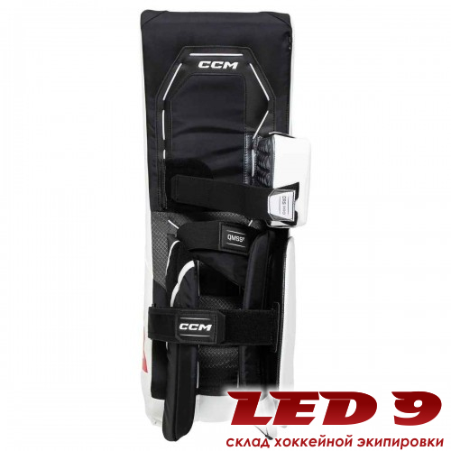 - Система крепления щитка к голени QMSS 2 которая включает в себя формованный верхний ремешок для оптимальной подгонки щитка под ногу вратаря.