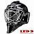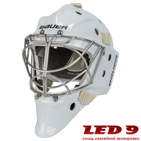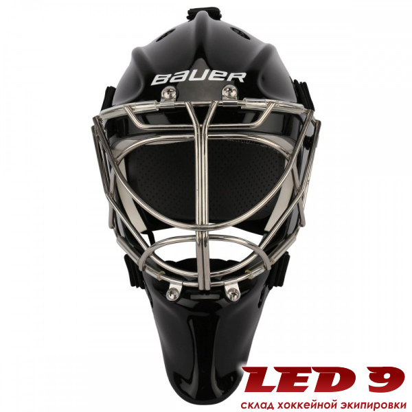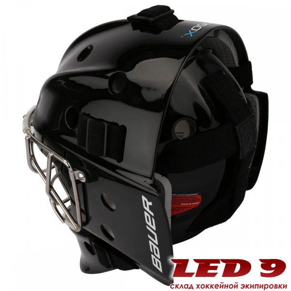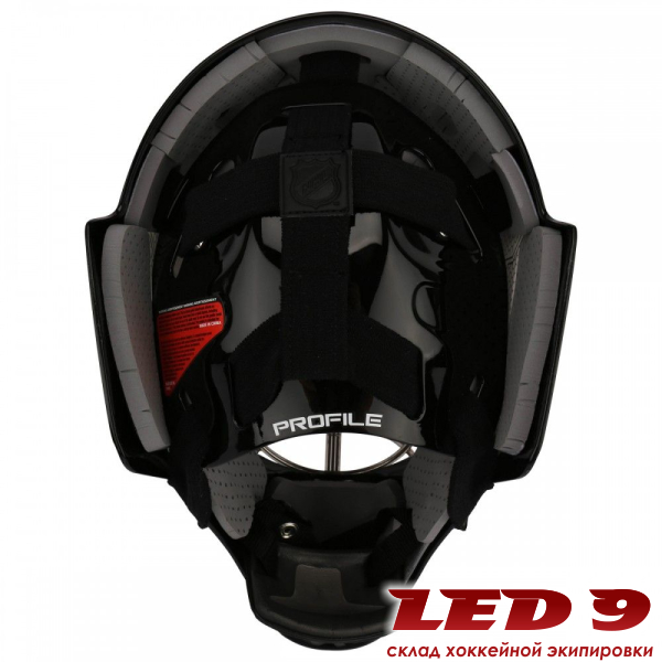 обладает комфортной посадкой и обеспечивает высокий уровень защиты. Корпус шлема выполнен из стекловолокна и армирован волокном Kevlar, что придает шлему легкость и высокую ударную прочность. Дополнительное покрытие углеродным волокном 12k увеличивает прочность шлема и делает защиту более надежной. Края, усиленные углеродным волокном, не образуют сколов. Мягкая пена Vinil Nitril, используемая в качестве амортизирующего наполнения, уменьшает давление шлема на отдельные участки головы и значительно повышает уровень комфорта. Пена Poron XRD была добавлена в зонах, подверженных частым ударам, для создания высокого уровня защиты. Пена Poron XRD представляет собой очень мягкий и легкий материал, который обладает превосходными свойствами защиты от ударов, что делает его идеальным дополнением к внутреннему, амортизирующему вкладышу. Амортизирующее наполнение прикреплено к корпусу механически, это означает, что его и винты можно удалить для чистки, замены или для покраски корпуса. Вентиляционные отверстия, расположенные по всему корпусу, создают хорошую циркуляцию воздуха и способствуют быстрому отводу излишков тепла от головы вратаря. Чаша для подбородка выполнена из вспененного материала, и ее положение регулируется с помощью застежек липучек. Подкладка на внутреннем вкладыше в области лба с технологией 37,5 препятствует попаданию влаги в глаза и быстро высыхает, за счет использования повышения температуры тела вратаря во время физических нагрузок. Основную подгонку шлема обеспечивает пятиточечный, регулируемый ремешок. Эластичные ремни можно регулировать так, чтобы они соответствовали любой форме головы, что обеспечивало бы удобную и безопасную посадку. Лицо вратаря защищает маска «кошачий глаз», которая выполнена из нержавеющей стали и отлично противостоит ржавчине. Маска не сертифицирована и не соответствует требования стандартов HECC и CSA